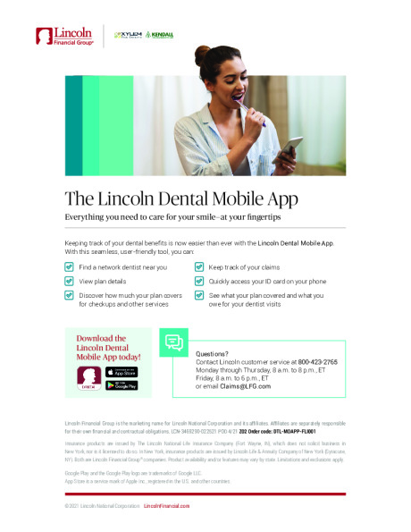 • Provider searching is available on our Mobile App and website by visiting LincolnFinancial.com/FindA/Dentist.
