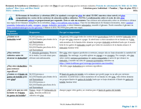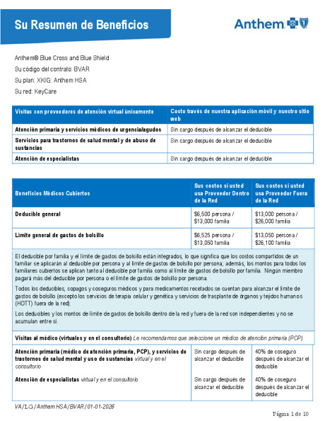 2026 SOB español XKIG Anthem HSA 6500