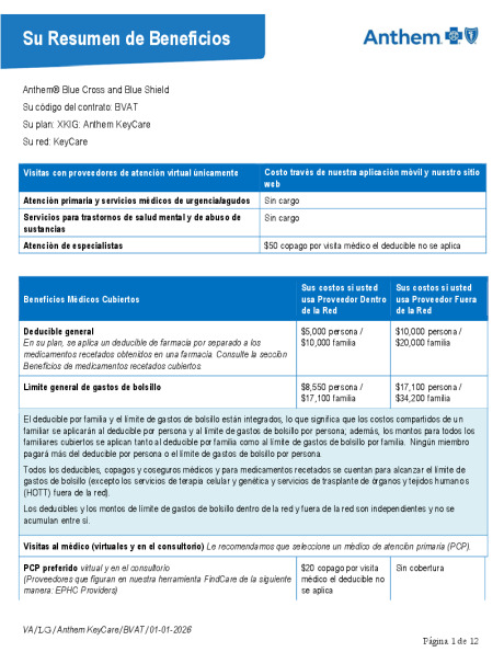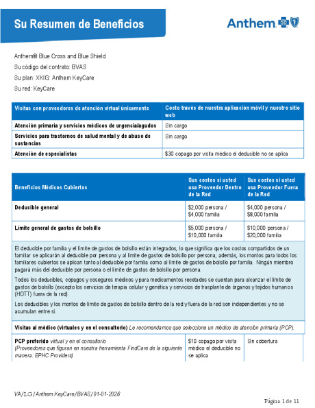 2026 SOB español XKIG Anthem KeyCare 25 5000