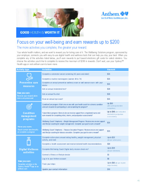 | Note: Out-of-network benefits available for all plans consist of higher premiums and coinsurance and may be susceptible to balance billing for any charges over the allowable limit for a service. Remaining in-network for services is advised. See SPD for details or anthem.com to see if your provider is in-network. | ||||||