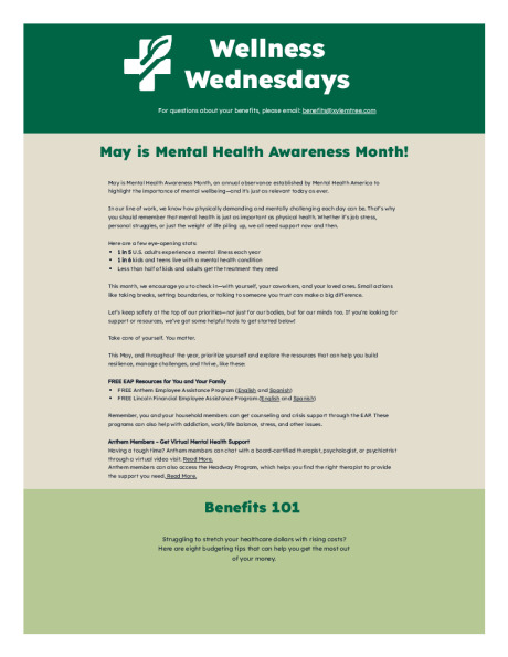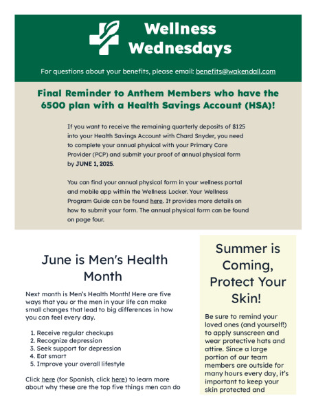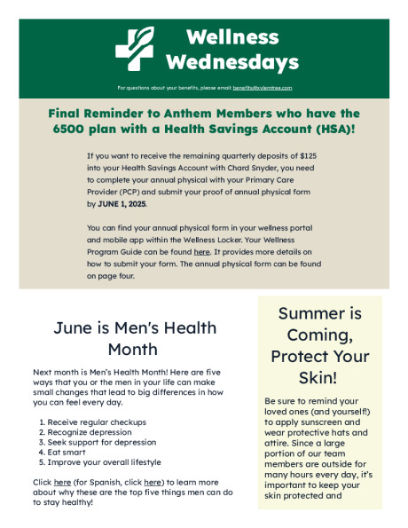 We are proud to offer a Wellness Wednesday Monthly Newsletter for all to read! Please see copies of each month below.